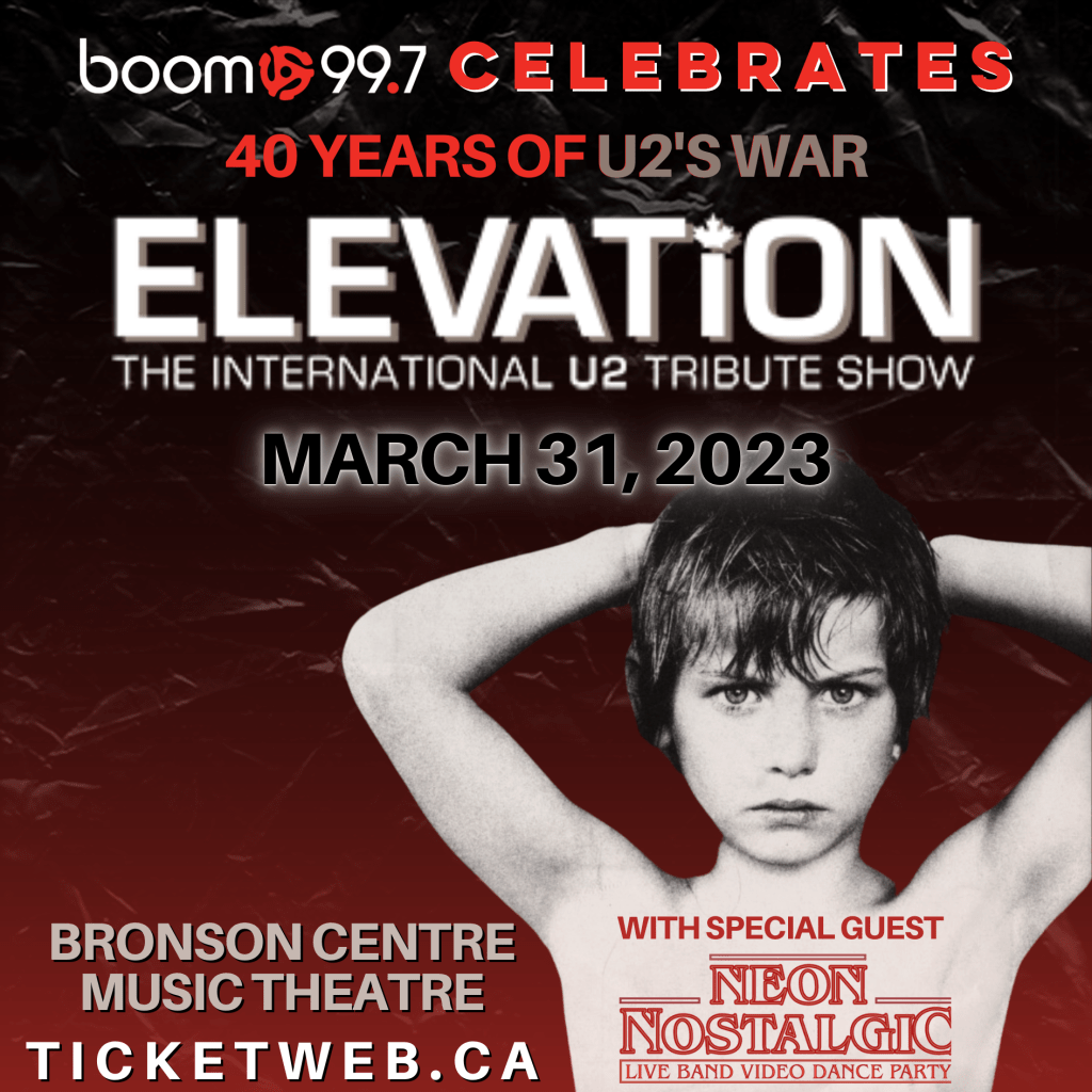 boom 99.7 Celebrates 40 Years of U2 “War” with Elevation: The International U2 Tribute Show and special guest Neon Nostalgic on March 31 at the Bronson Centre Music Theatre.