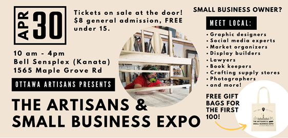 The Artisans & Small Business Expo is a tradeshow for all local business owners and artisans in Ottawa. At the expo, they will be able to meet local products and service providers to grow their business like graphic designers, delivery services, marketing and social media managers, signage and printing services, photographers, bookkeepers, market and store owners, professional services and so much more!