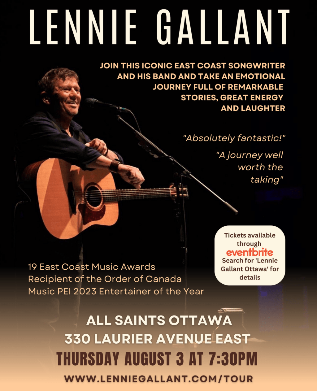 Join us for an unforgettable night with Lennie Gallant in concert on August 3, 2023 . Doors open at 6:30pm, concert begins at 7:30pm.