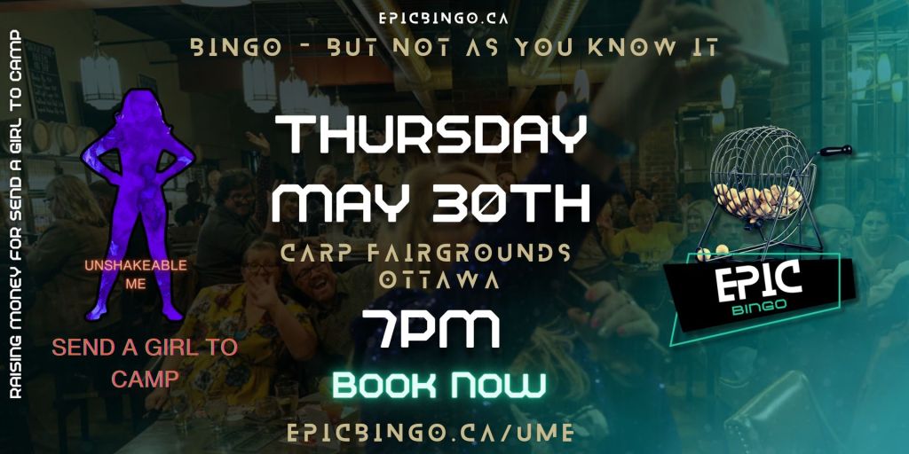 Join us for an extraordinary EPIC Bingo Night Out It’s bingo, but NOT as you know it! A unique fusion of traditional bingo, dance-offs, special epic games, musical interludes, audience participation, and an abundance of captivating moments, not to mention our silent auction full of AMAZING items. TONIGHT, we make memories AND make a difference as we come together to raise money for Unshakeable ME’s “Send a Girl to Camp” sponsorship program. We believe that EVERY girl deserves to go to camp and that money should not be the reason she can’t go! Help us to make these girls’ dreams of going to camp a reality and have an EPIC fun time doing it!
