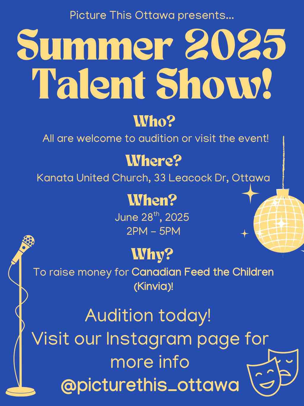 Got a hidden talent or a performance you’ve been dying to share with the world? Now’s your chance! Picture This Ottawa—a student-led, non-profit group passionate about community connection—is hosting an incredible talent show on June 28th in support of Canadian Feed the Children (Kinvia).