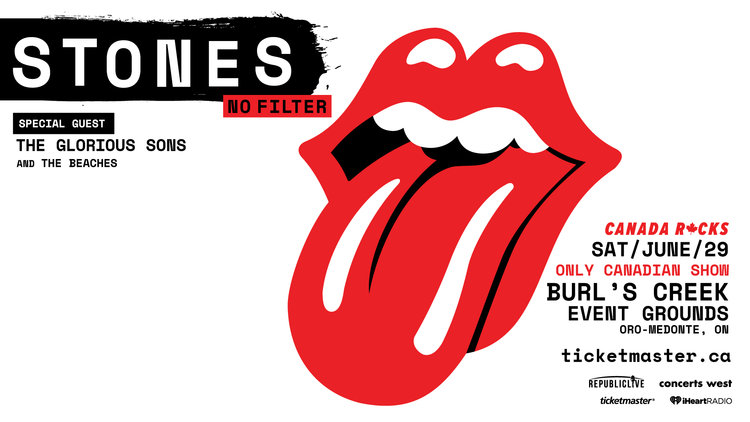 The Rolling Stones will bring their hugely successful ‘No Filter’ tour to Burl’s Creek Event Grounds in Oro-Medonte this Canada Day weekend on Saturday June 29th for ‘Canada Rocks with The Rolling Stones.’ Burl’s Creek will be the only Canadian show for The Stones. Additionally, Canada Rocks with The Rolling Stones will be joined by special guest The Glorious Sons, and will include The Beaches and others.