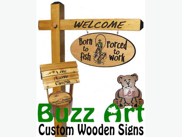 Buzz Art specializes in wood engraving, custom outdoor signs (cottage signs being our specialty), we also offer services in laser engraving and cutting and 3d design and print