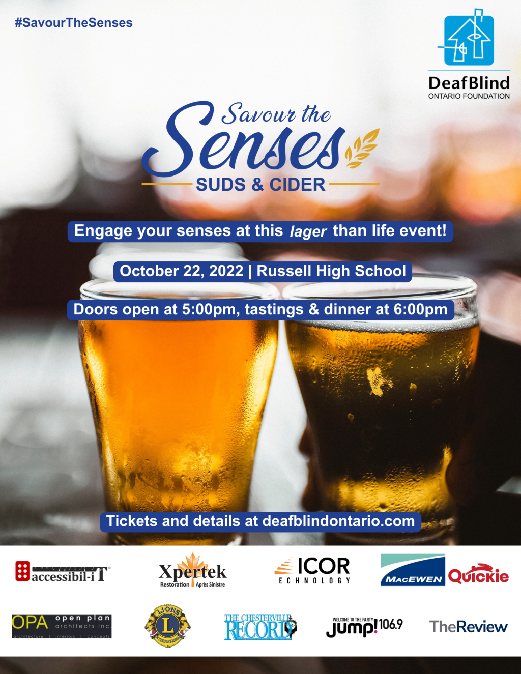 Test your beer IQ and experience a sampling of the Ottawa area’s finest beers – without your eyes! Join DeafBlind Ontario Foundation on Saturday, October 22 at Savour the Senses – Suds and Cider in Russell.