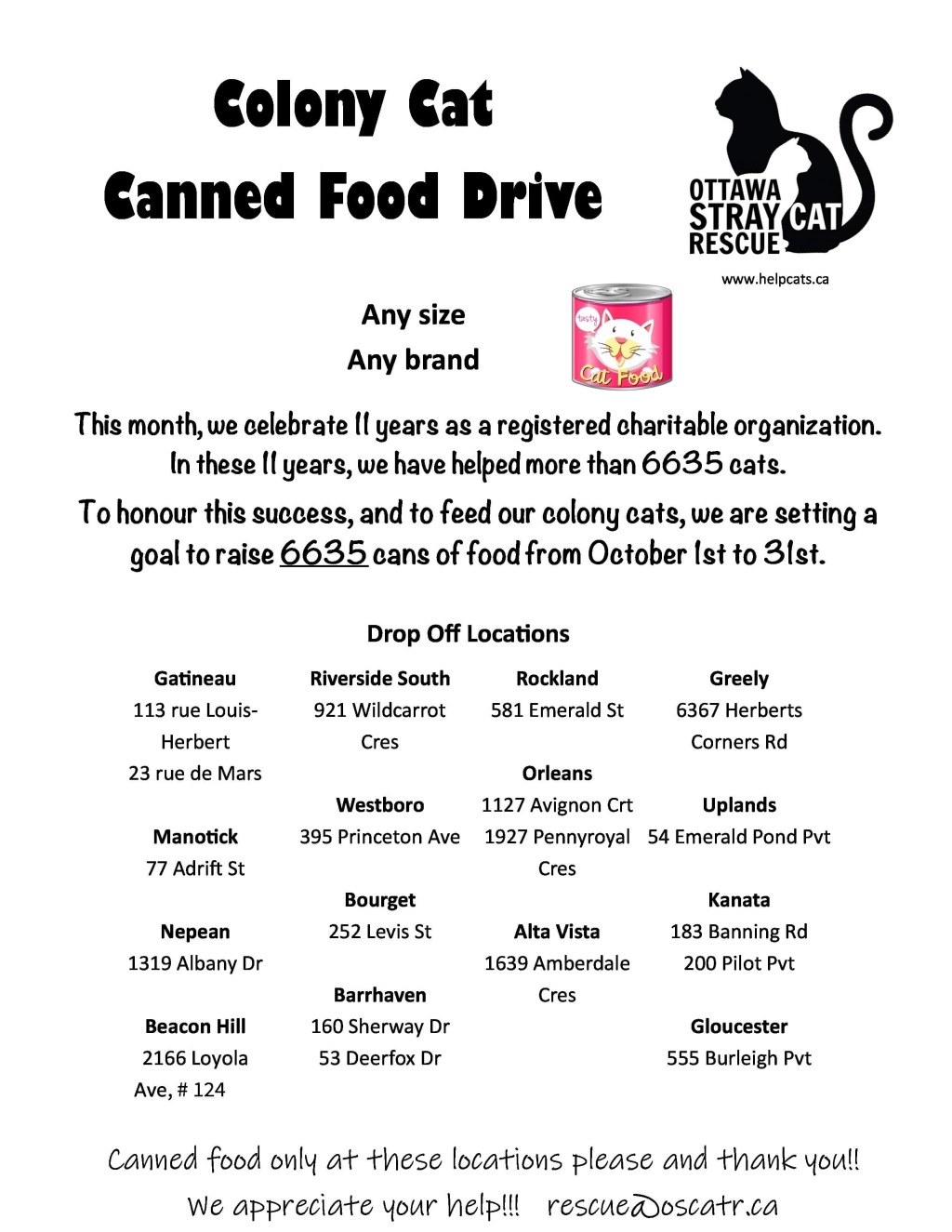 To honour this success, and to feed our colony cats, we are setting a goal to raise 6635 cans of food from October 1st to 31st.